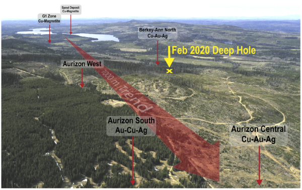 “EnGold has enjoyed many exploration successes at Lac La Hache focusing on closer to surface copper/gold skarn & breccia deposits with mine making potential such as Spout, G1 and Aurizon,” said EnGold President & CEO David Brett. “But drilling deeper has always been something management and many shareholders have been very bullish about, and its exciting to be going ahead with this hole under the direction of our exceptional technical team.”